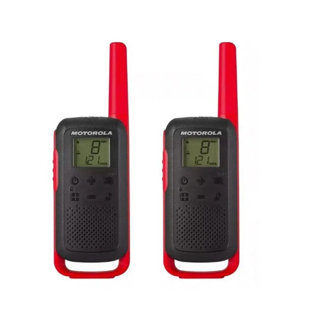Emparejamiento simplificado Radio FRS; sin licencias Carga USB iVOX/VOX manos libres Potencia dual 121 códigos de privacidad Pantalla retroiluminada