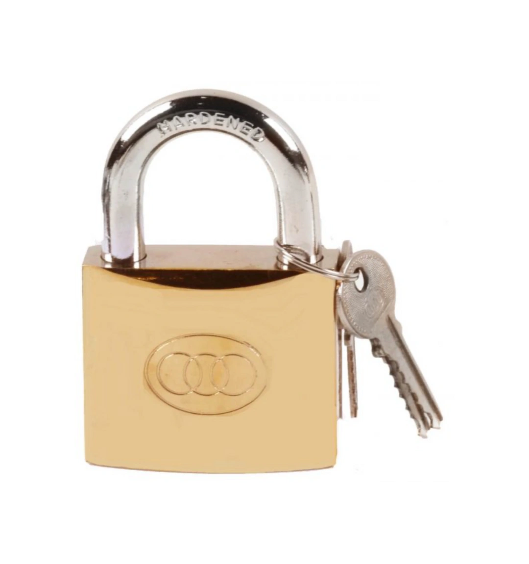 Material: Cuerpo de acero sólido con acabado dorado. Tamaño: 50 mm Arco endurecido de alta resistencia. Sistema de cierre de doble enganche. Incluye 2 llaves. Uso: interior y exterior.