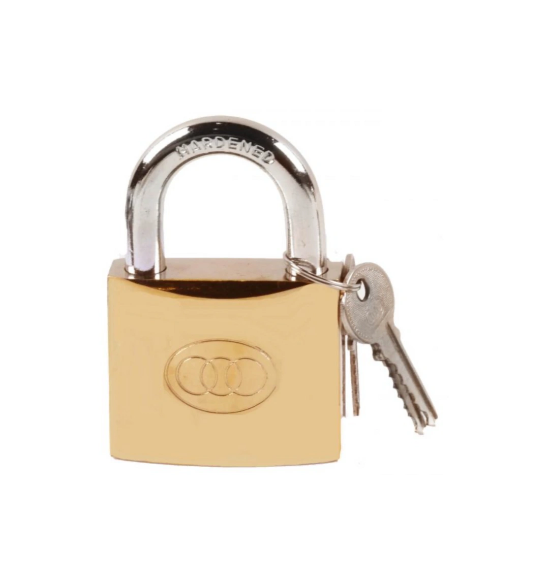 Material: Cuerpo de acero sólido con acabado dorado. Tamaño: 63 mm. Arco endurecido de alta resistencia. Sistema de cierre de doble enganche. Incluye 2 llaves. Uso: interior y exterior.