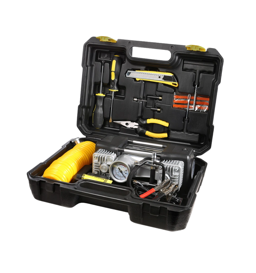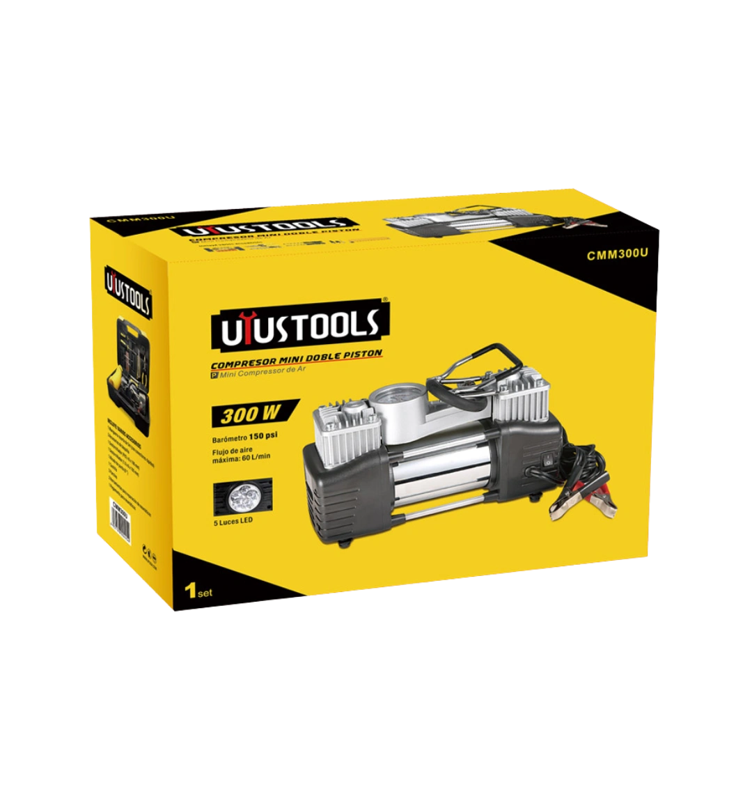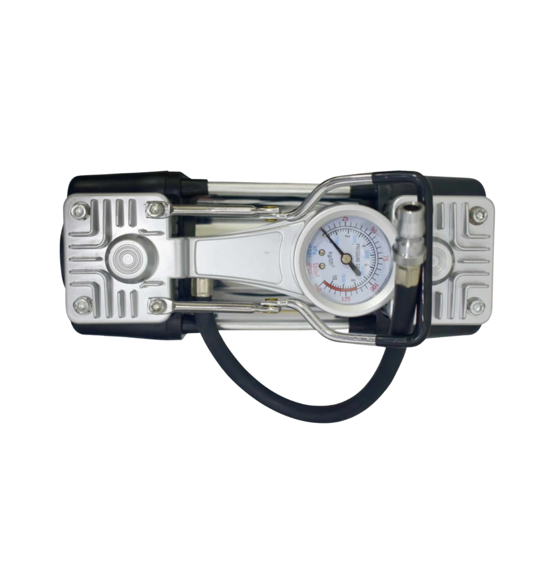 Modelo de fácil manejo conexión directo a la batería del auto, rápido inflado gracias al poder de su doble pistón. Voltaje: DC12V – 13.8V Corriente máxima: 25A Potencia: 300 W.