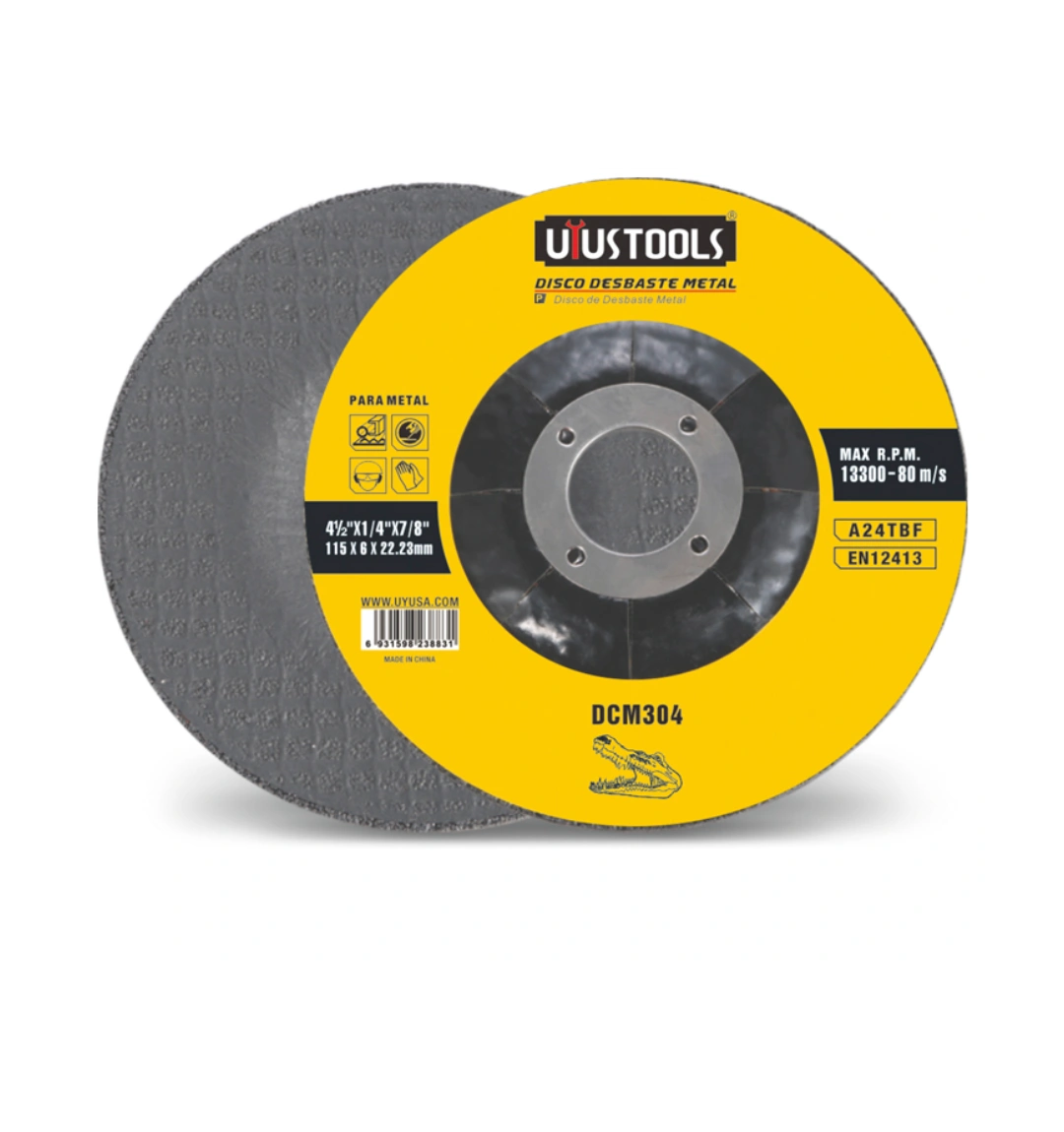 Rebaje y limpieza de soldaduras, preparación de superficies, eliminación de óxido y rebabas. Medidas: 4½» x ¼» x ⅞» (115 x 6 x 22.23 mm) MAX R.P.M. 13300-80 m/s Tipo de Grano Abrasivo: A24RBF