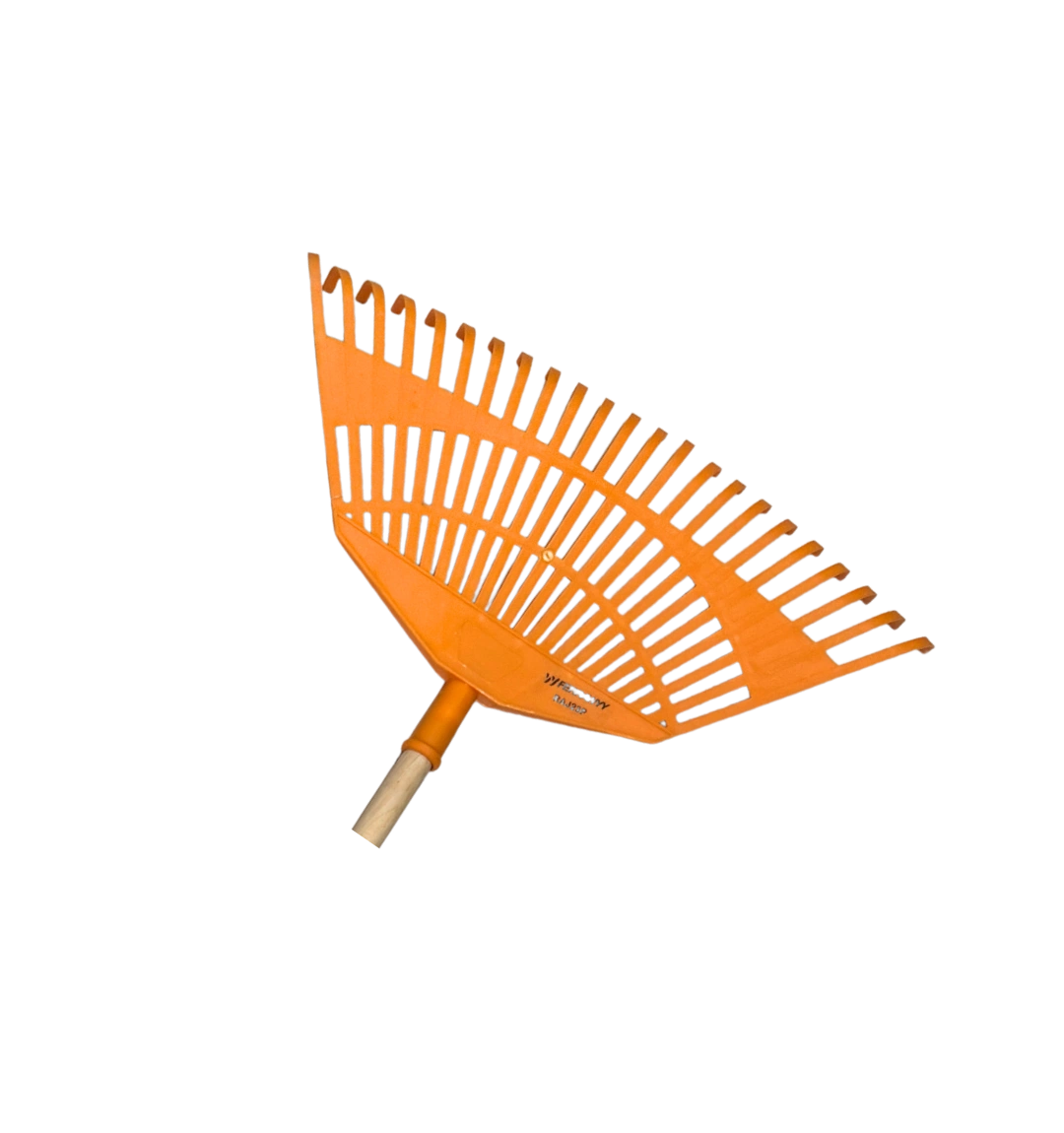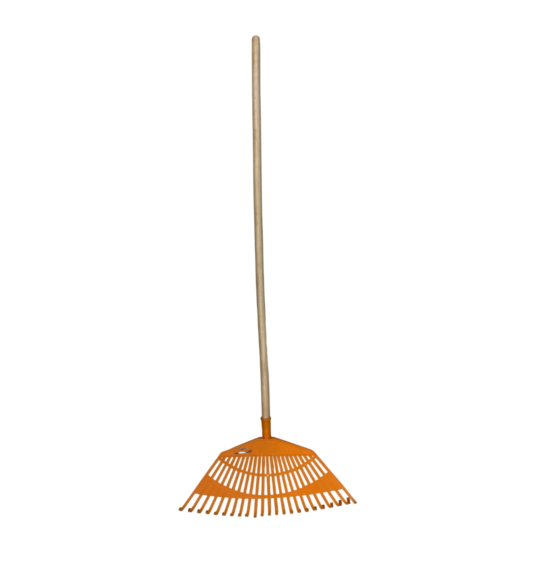Para recoger la hierba cortada o hojas secas. Mango largo de madera.