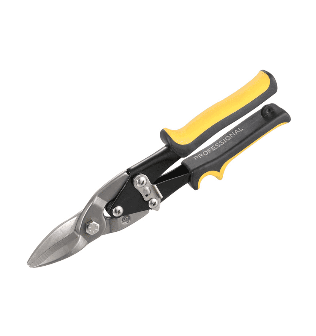 Herramienta de corte recto, diseñada principalmente para cortar láminas metálicas y otros materiales como cobre y acero inoxidable. Es una herramienta robusta y de uso generalizado en hojalatería, talleres mecánicos y trabajos de construcción.