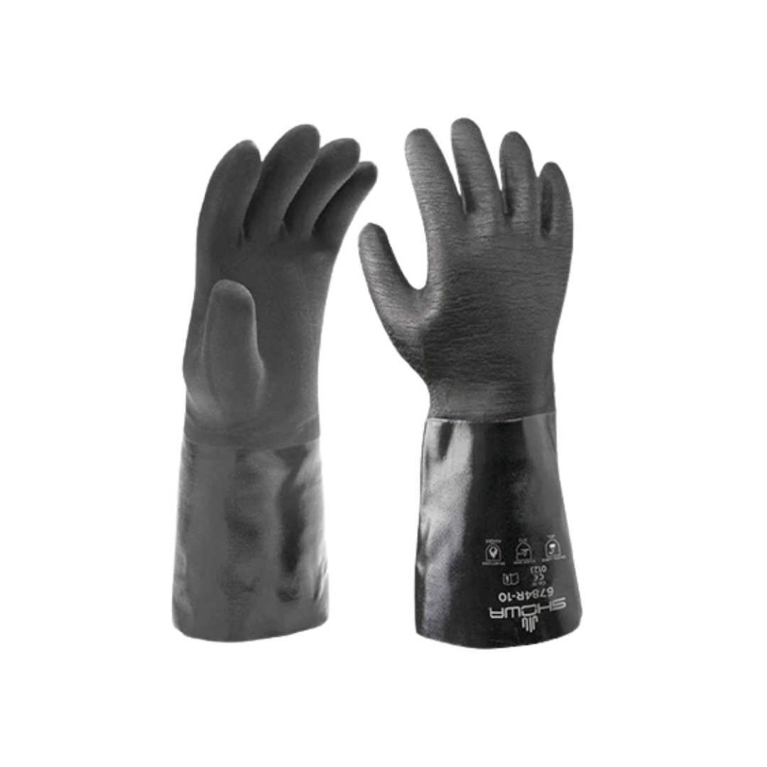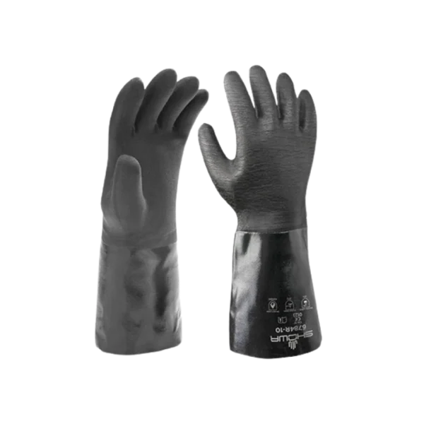 Recubrimiento: Resistente a los productos químicos, Neopreno, Resistente al agua. Material: Algodón. Agarre: Rugoso Color: Negro. Largo: 356 mm – 14″ Refuerzo: Palma/Espalda Talla: 9/M / 10/L